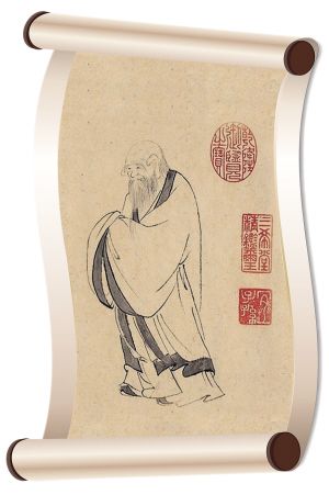 老子与儒家思想的创始人孔子,是人类历史上的两位古圣先贤,他们差不多生活于同一时代,老子的年岁略长于孔子。据《史记》等典籍记载,孔子仰慕老子的学问,曾多次向老子请教。孔子曾对弟子说:“周之守藏室史老聃,博古通今,知礼乐之源,明道德之要,今吾欲去周求教,汝愿同去否?”后来孔子千里奔波,专程问礼于老子。老子热情招待,教之以大道礼乐,赠之以警世名言。老子告诉孔子:“天下莫柔弱于水,而攻坚强者莫之能胜,此乃柔德也;故柔之胜刚,弱之胜强坚。”孔子闻言,恍然大悟,“先生此言,使我顿开茅塞也:众人处上,水独处下;众人处易,水独处险;众人处洁,水独处秽。所处尽人之所恶,夫谁与之争乎?此所以为上善也。”孔子叹服于老子的智慧学识,认为老子是像龙一样的存在,他向弟子感叹道:“龙乘风云而上九天也!吾所见老子也,其犹龙乎?学识渊深而莫测,志趣高邈而难知;如蛇之随时屈伸,如龙之应时变化。老聃,真吾师也!”