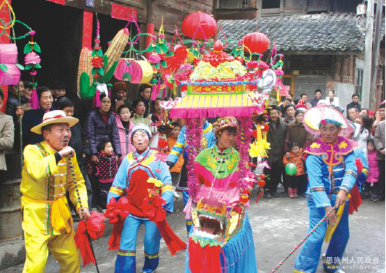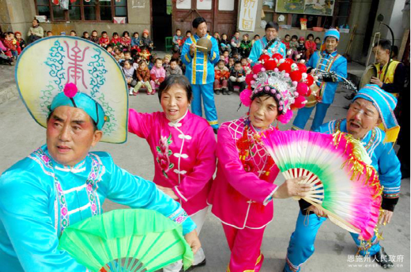 利川灯歌,又名灯调,始于清代初期,已有300多年的历史,是人们逢年过节之时以彩龙船为道具,画地为台、亦唱亦演的民间艺术形式。2011年5月,利川灯歌被国务院公布为第三批国家级非物质文化遗产名录。