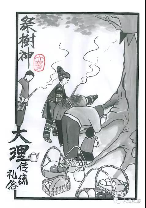 在大理各个彝族村寨都有神树,被称作“密枯”神树。