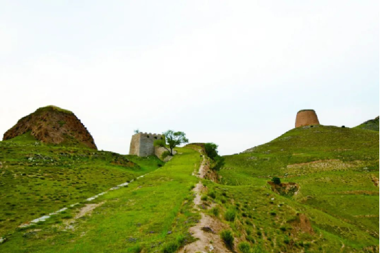 呼和浩特市清水河县城关镇银滚山长城公园,背景烽火台。