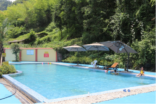 大人们在青山绿水间泡温泉、赏风景,孩子们在儿童水上乐园嬉戏玩闹,中晚饭点时在农家乐里吃着当地流水养殖的生态鱼,体验着乡村风情,舒适惬意遍布全身。
