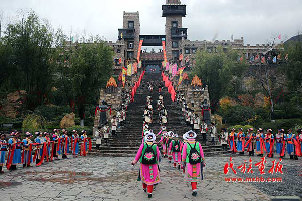 简介:清晨,随着太阳徐徐升起,古羌城的工作人员陆续从茂县县城的四面八方赶来,汇集在中国古羌城广场,举行隆重的开城迎客仪式。盛装的演职人员列队迎接“羌王”入宫,随后载歌载舞,开始一天的工作。[详细]