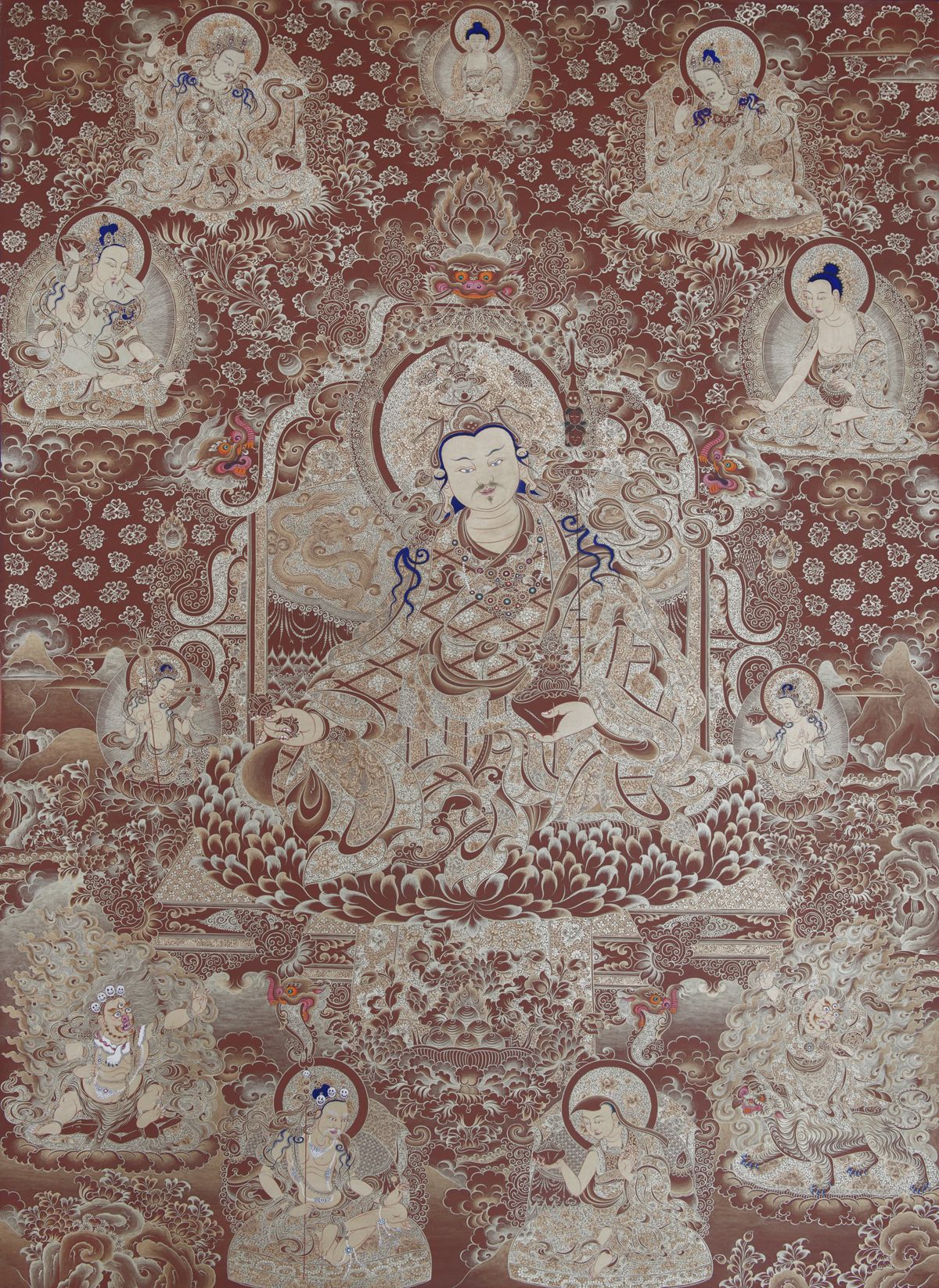 《莲花生大师八变图》(朱砂)