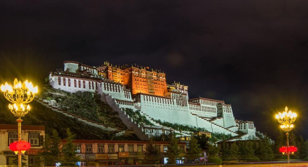 布达拉宫在西藏拉萨西北的玛布日山上,是著名的宫堡式建筑群,藏族古建筑艺术的精华。