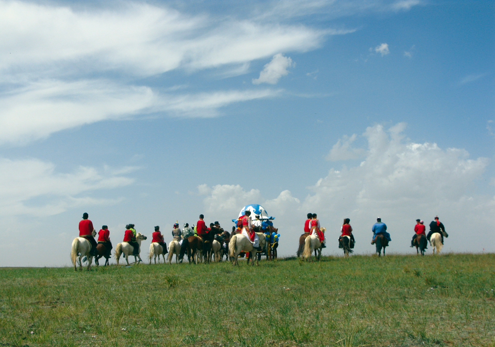 在蒙古民族人生礼仪中,其婚礼仪式最为隆重、热烈,充满草原文化综合特征。