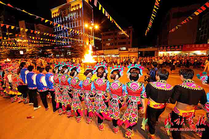 火把节是彝族传统节日中最普遍、最隆重、最富有民族特色的节日,一般在农历六月二十四至二十六举行,楚雄彝族火把节于2006年5月经国务院批准为第一批国家级非物质文化遗产保护项目。节日内容集民俗活动、经贸活动、文体活动和社交活动于一体,像磁石一样吸引着各族群众,许多人就是通过参加火把节认识了彝族,知道了楚雄彝族自治州的。节日期间,各族人民载歌载舞,耍火把、放焰火,火把节成了弘扬彝族文化、促进对外交流、开展经贸活动和各族人民大团结的盛会。