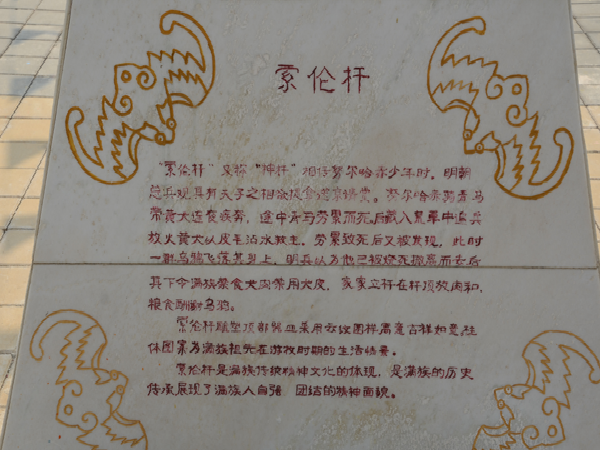 满族认为,“四世同堂”或“三世同堂”是件大喜事,同堂的辈行越多越光荣。因此,随着人口的增加,除正房外,又建有东西厢房和南向而中间留有门洞的门房,这种建筑及布局就是我们今天所称道“四合院”。其特点是:院内靠门洞的地方建一矮墙,称为“影壁”。影壁后竖一根八尺高左右、碗口粗的神杆,杆顶端挂有一锡制或木制的斗子,称为“索伦杆”。两厢南端是牲畜栏圈。正房后中间空地是菜圃,四周栽植果树或花卉。房屋四周围以横墙,自成院落,大户用砖石,小户用木栅。这样院连院,户连户,很自然地形成了堡子、营子和屯子。