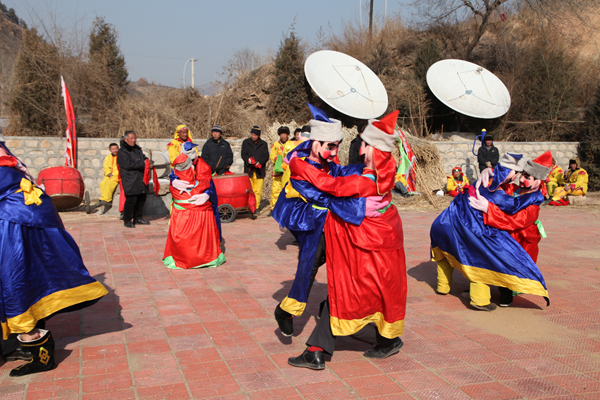 “二贵摔跤”,表演者实为一人,穿戴巧妙制成的道具,就可以扮演两个扎小辫的顽皮儿童扭打摔跤。单人扮双人摔跤,模仿得维妙维肖,一时难辨真假,风趣幽默。