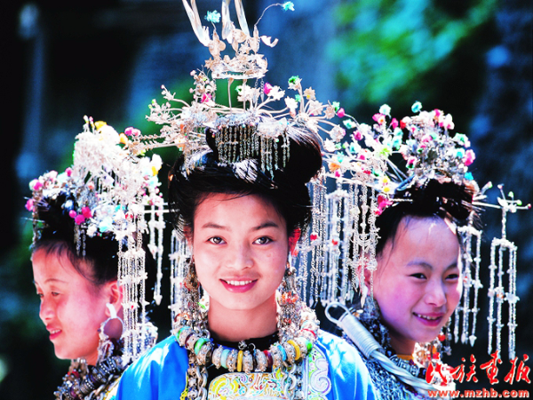 贵州榕江侗族少女头饰 卢现艺摄影 引自民族画报