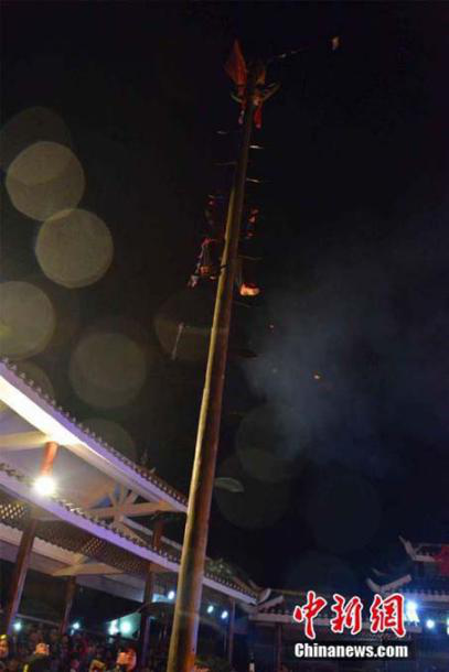 12月6日夜晚,在中国瑶族之乡广西金秀瑶族自治县的盘王节上,当地瑶族百姓通过祭盘王、还盘王愿,祈求风调雨顺、五谷丰登