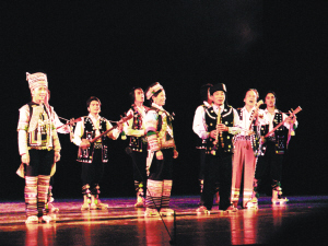 从一个豪迈响亮的女声开始,加入歌唱行列的人越来越多。十几个人每个人持一个声部,形成越来越强大的和声。一切都是即兴演唱,没有固定下来的旋律,人们听着站在自己左右两个人的音调,判断自己应该发出什么样的声音。和谐而神秘的《栽秧山歌》,和侗族大歌一起推翻了“中国民间没有合唱艺术”的传统论断,而演唱的随机性,又让哈尼族多声部民歌具备了一种活态的美。当人们为台上的年轻演员竟能掌握如此玄妙的艺术而赞叹时,很难想到,这样了不起的绝活走向华丽舞台的过程,却是充满坎坷与艰辛的。