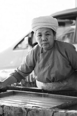 傣族老大妈制作的构纸