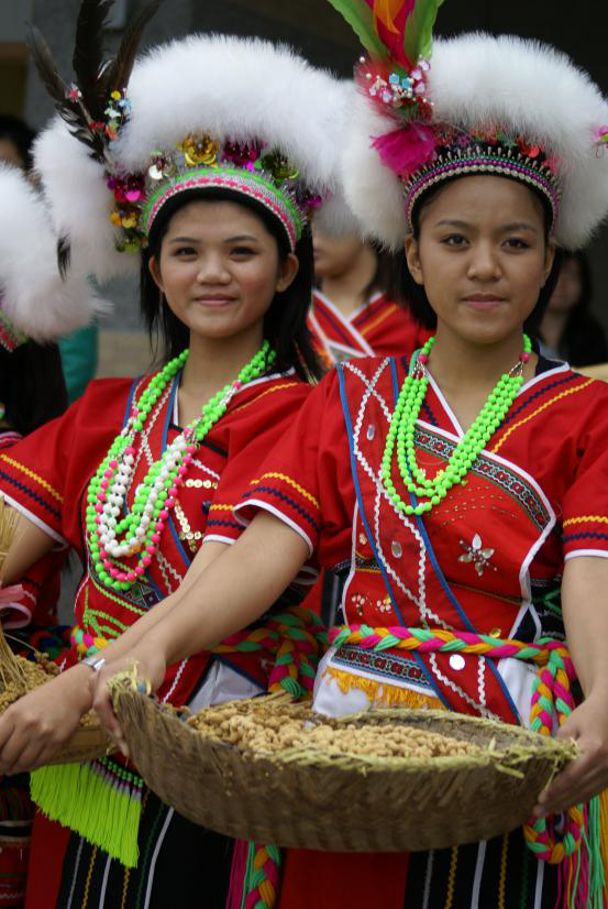 高山族过去以裸身为美,裸形赤足,仅以兽皮、树皮及植物纤维制作的幅布蔽体,有凿齿、穿耳的习俗。接触汉文化后,逐步形成了男着长衫、女着裙装的习惯,衣服除了兽皮和树皮外,还喜好用自织麻布,饰以彩色纹样。