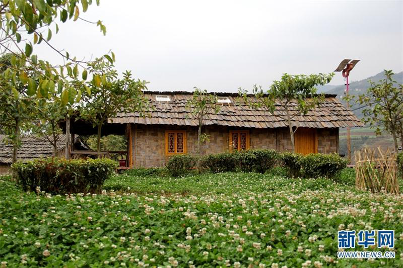 绿树青草掩映下的拉祜族传统民居。新华网 念新洪 摄