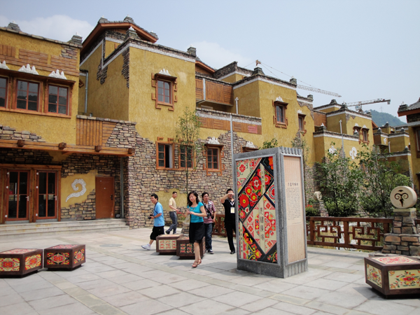 汶川地震灾后重建综合体现藏、汉、羌族特色的标志性建筑(王铁志摄影)