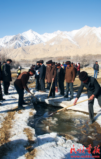 塔吉克人破冰引水,为春耕做好准备。袁东平 摄影 引自民族画报