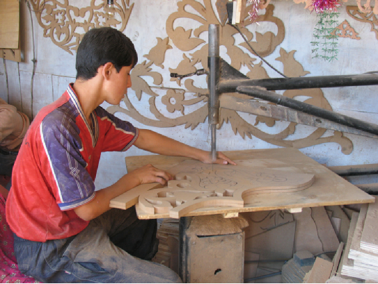 乌孜别克也从事手工业生产,莎车地区的手工业比较集中,其中大多数是丝织业,1949年前,有些规模较大的手工业作坊已具有资本主义萌芽。乌孜别克族妇女刺绣的小花帽、衣边、床单、枕头等,制作精致,为人们所喜爱。此外,北疆的木垒、奇台、新源、尼勒克、特克斯等地有少数乌孜别克族居民从事牧业;塔城、伊宁等城市有些乌孜别克族居民兼营畜牧业,居于南疆的喀什、莎车、巴楚、阿克苏和北疆的伊宁等城市附近的少数乌孜别克族居民经营农业,主要从事同城市生活密切的水果、蔬菜生产。