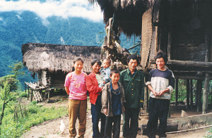 取走竹箭背上弩弓向巴坡返回,一座竹楼里传出一群孩子的声音。进了屋,大人不在,主人的孩子见到我赶忙拢火烧水,屋里还有邻家的几个孩子。我对孩子们说,走哇,到外面射箭去。
