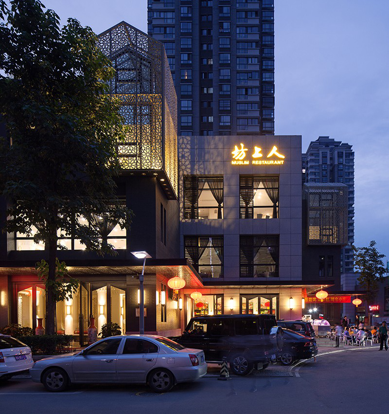 夜色中的坊上人饭庄