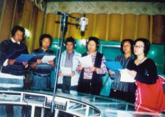 凉山州民族电影译制中心演员在进行彝语数字电影配音