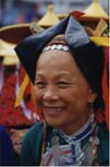 惠东女服饰文化源远流长,其形成、发展过程一直是中外人类学、民俗学专家关注的课题。其来源有种种传说,目前尚无定论。据史料记载,清代中后期,惠东妇女上穿黑色或紫色长袖挖襟衫,下穿黑色大折裤。衣长、胸、腰背宽阔,下沿稍呈弧形外展,与清代流行的“大夫衫”(长式挖襟衫)类似。不同的是袖口偏窄,袖子接长,故名“接袖衫”又名“卷袖衫”接袖的用意十分有趣,为的是让新娘入洞房时提起长袖以遮掩一脸羞红;过了3日,才在长袖一半处翻卷逢住固定。到了清未“接袖衫”各部分略为收缩,衣沿弧度加长,臂围宽度加阔并向外弯展,腰围处的中式纽攀减少,两个连在一起,袖口绕蓝布边。领围上刺绣图案由简变繁,领根下方形色布改为三角形。胸、背中线两侧缀做两块方形黑色、深褐色绸布,其四边各镶接一块三色形色布,改称“缀做衫”。裤子为“大折裤”又名“大筒裤”,俗称“汉装裤”。裤一般用黑色布,也有用蓝色的。裤脚宽约1.2尺,裤头约2尺,缝一道5寸的蓝色布边。其样式从清代中后期至今没有多大变化,惟质料由旧时用粗布,今天改为通用黑绸布。惠东女服饰,历来重视腰以上部分,特别以头饰最为突出,花样繁多,不同场合、不同年龄的头饰有明显区别。