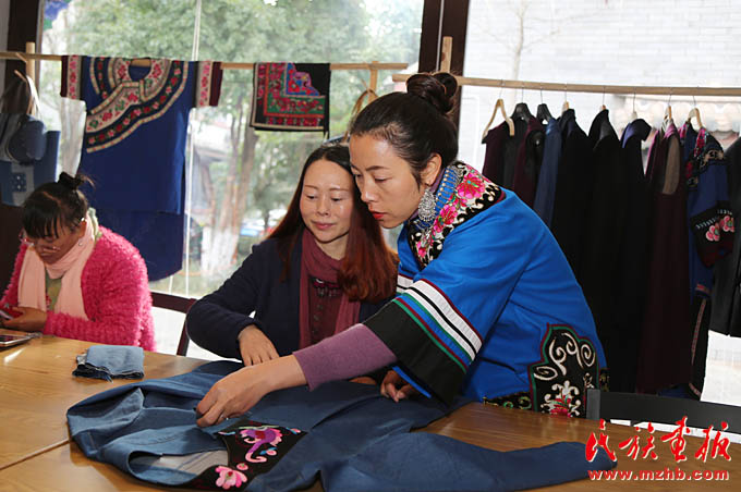 设计师卢洁莹指导绣女