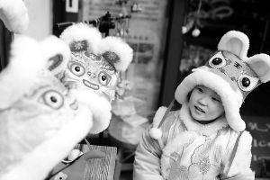 壬寅新年,一名小朋友试戴虎头帽。新华网发