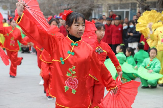 在[资2]让人流连忘返的民俗演出中,最引人瞩目的便是来自讨思浩小学的学生们带来的自“天仓节”祈福仪式演变而成的“天仓舞”表演,孩子们有板有眼的舞蹈动作完全不逊色于专业的演出队伍,不仅将讨思浩特有的传统民俗淋漓尽致的展现出来,更是对西北农耕文化的有力传承。据介绍,2018年12月开始,村委会联合讨思浩小学于每周五下午开设了民俗文化特色课,天仓舞传习、民俗历史讲座等内容的设置,让孩子们对家乡的历史文化更加了解,增添了对家乡的认同感,也让保留了几百年的民俗文化得到了传承。