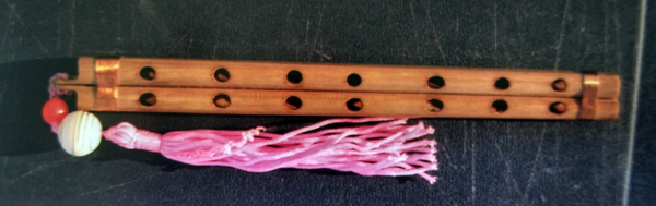 羌笛是一种吹管乐器,历史悠久。羌笛至今已有两千余年历史。据史载,西汉前,羌笛面上有四孔,公元一世纪由京房加一高音按孔,为五孔。东汉马融在《长笛赋》就曾有“近世双笛从羌起”的记述,唐代亦有“羌笛何须怨杨柳”的名句。发展到近代羌笛已成六孔。2006年5月“羌笛演奏及制作技艺”被列入《第一批国家级非物质文化遗产目录》。羌笛在羌语中称为“其篥”“士布里”或是“帮”,是一种古老的民间竖吹乐器。它由两根长约15—20厘米,直径1厘米左右,筒孔大小一致的竹管并在一起,用丝线缠绕,管头插着竹簧。管身竹制或骨制,由发音簧哨和方筒形管体组成。两管长短、孔距和音高相同。管上设五个或六个按孔。演奏时,双手持笛,将簧哨含入口内,用特殊的“鼓腮换气法”吹奏,指法与笛相同。制作羌笛一般选用箭竹,并根据筒管的长短、厚薄及筒管大小测定音准,孔距必须精确相等,否则音准不一。