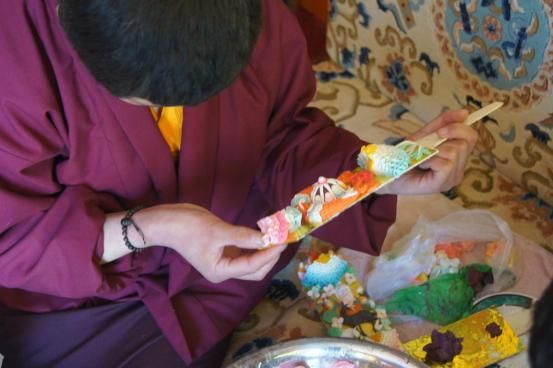 酥油花是藏族传统工艺的古老艺术之一,又称油塑艺术,是以酥油为材料而制成的特殊雕塑作品。每年冬天,由手工艺人们将酥油切成薄片,加上冷水,搅拌均匀,加入各种矿物颜料后雕塑而成。每年藏历新年的一月十五日都会举行盛大的酥油花艺术作品展览活动。