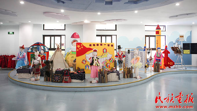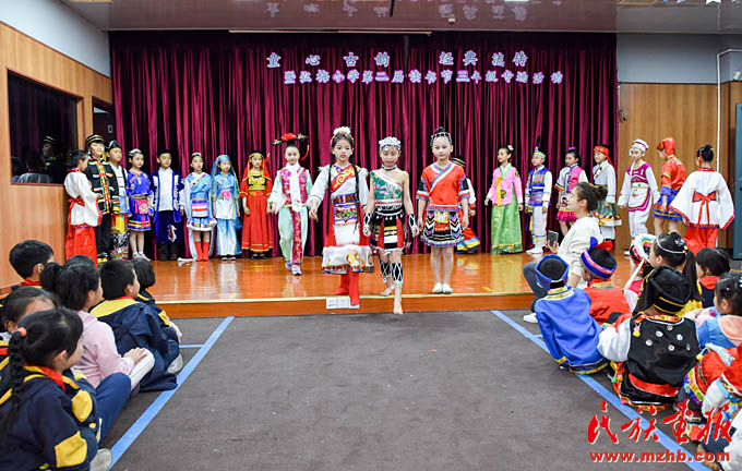 同一天下午,一场精彩的T台秀在上海市闵行区梅陇镇弘梅小学上演。小学生们身着民族服装亮相,动感的音乐、精彩的表演,将“民族团结一家亲”的理念演绎得生动活泼。学校布置的民族文化墙上,展示了我国56个民族的风土人情,营造了多姿多彩的民族文化氛围,让民族特色文化陪伴在学生身边。