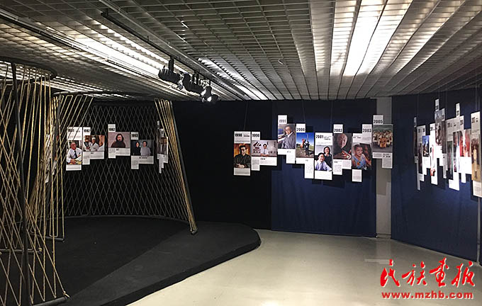 在历史跨越的现场——纪念改革开放四十周年中国民族影像志摄影展上,摄影师巴义尔“改革开放40年蒙古族人物影像志”主题展区