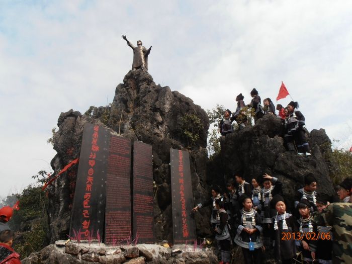 水族农民起义抗清英雄潘新简的塑像在三都水族自治县九阡镇水梅村的岜碉山上矗立。