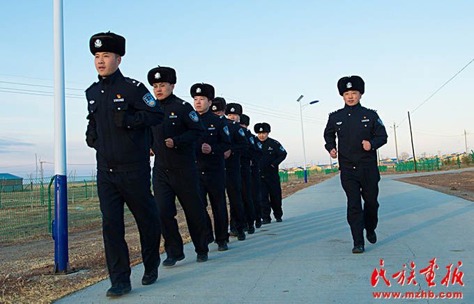 敖日奇朗(右)带着派出所民警训练。