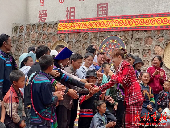 乌兰图雅在广西河池市环江县演出后与各族群众合影留念。