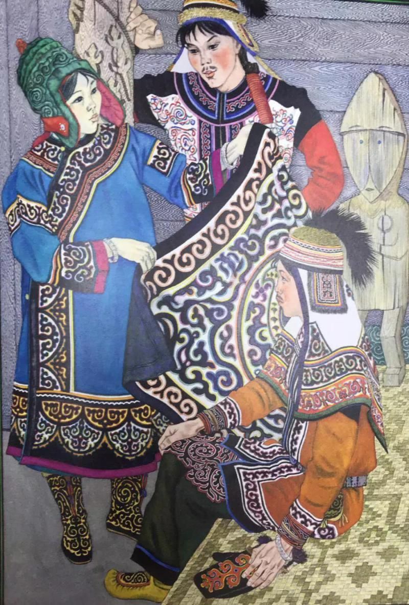 那乃族的插画,有的用细腻的绘画语言真实再现了那乃族的生活场景,有的用生动形象的装饰语言表现了那乃族的传说故事。