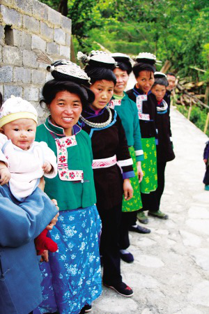 苗寨村民迎宾客 左慧 摄