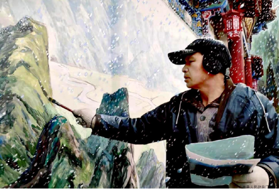 进士后裔陆华岳老师在莲湖公园冒着严寒创作 (兰天明摄影)