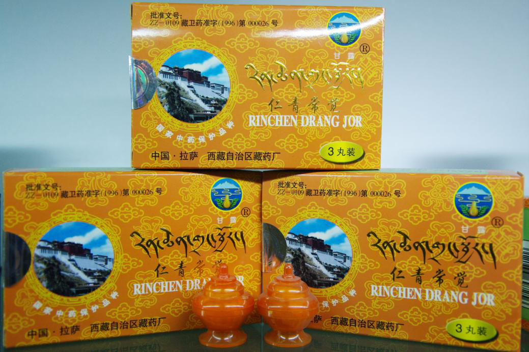 该药是珍宝藏药中的极品,始载于《四部医典》。被藏民尊为“仁软日布”,汉语即“灵丹妙药”。仁青常觉能治疗多种疾病,是滋补、长寿药物的上品。