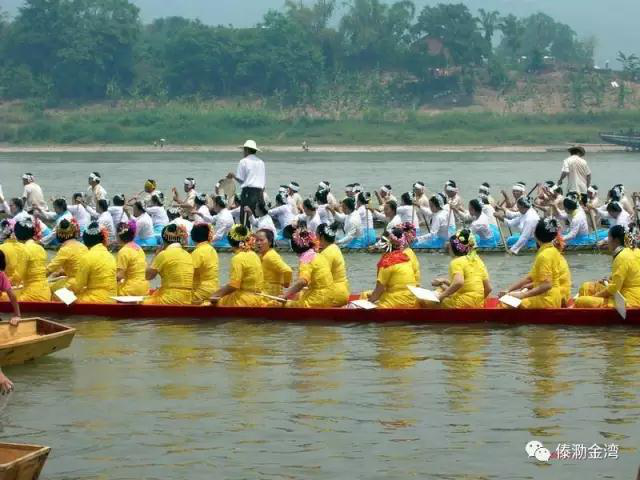 每年的泼水节,西双版纳傣族都要举行横渡澜沧江的赛龙舟活动。一般在泼水节的第一天举行。比赛时,江上停泊着披绿挂彩的龙船,船上坐着数十名精壮的水手,船中间站立1人击锣指挥,号令一响,整装待发的龙船像箭一般往前飞去,在规定的范围内,哪一队先到达目的地为胜。