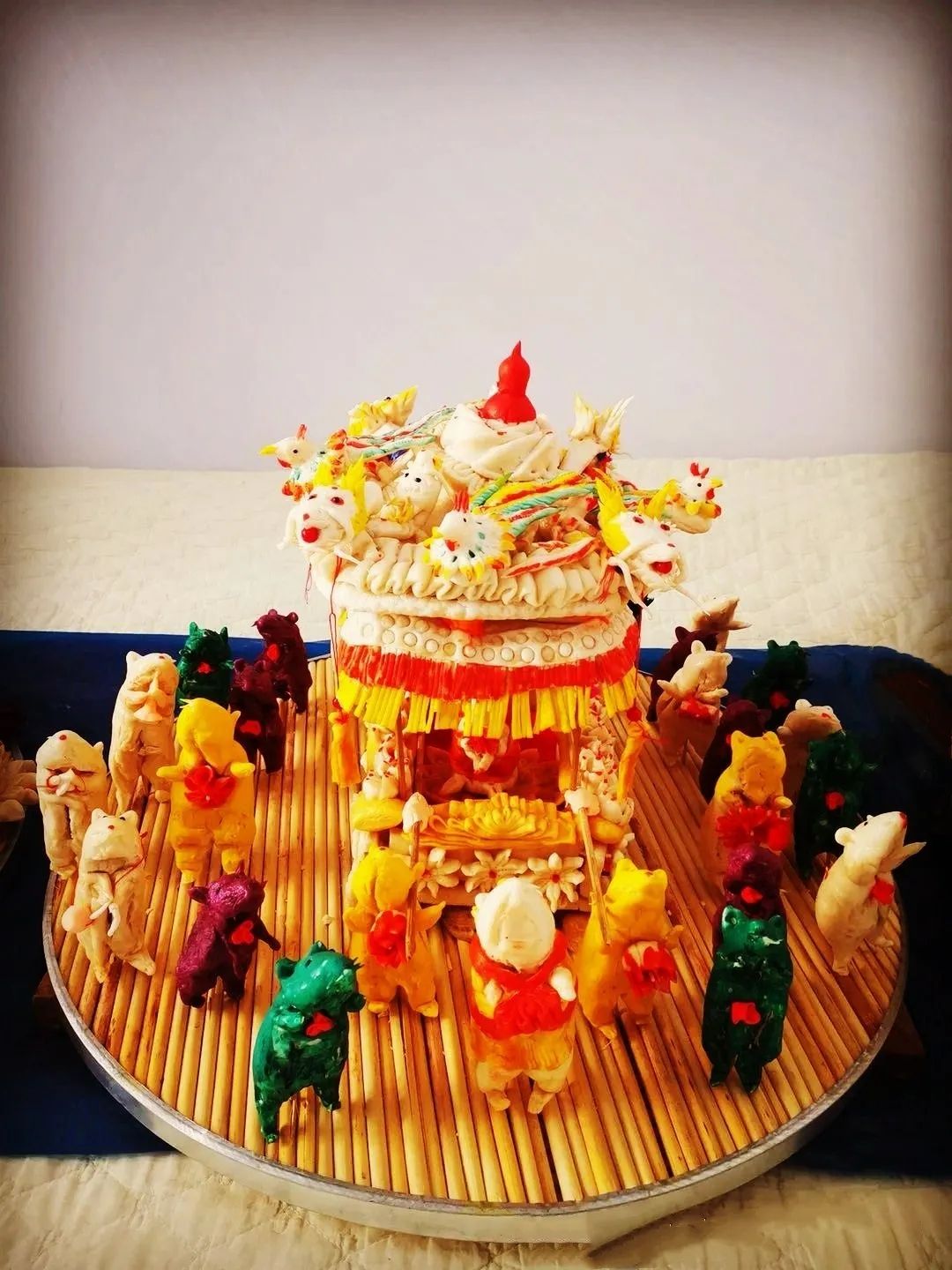 由于托克托县地理位置独特,早在清朝时期是塞外闻名的“水旱码头”,这里交通便利,经济繁荣。康雍乾时期两翼土地的放垦,成为口外汉族村落形成的主要原因。到乾嘉之际,土默川纵横900余里田陌相望,农商两业日臻繁盛。大批山西、陕西、河北等地农民、商人、小手工业者纷纷来到这里种田、经商及传授手工技艺。从而晋陕地区的捏面人手工技艺也被带到托克托县地区,在这里汉族和少数民族(主要是蒙古族)相互融合,形成了独具特色的托克托县面塑技艺。内蒙古自治区级非物质文化遗产代表性传承人薛籽女,托克托县章盖营村人,是自治区级托克托县面塑传承人,下面展示的是她创作的面塑作品:《老鼠娶亲》、《鼠年抗疫情》、《千手观音》。