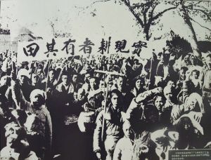 冀中农民举行拥护土地改革运动大会(翻拍于西柏坡纪念馆)。 新华社记者 朱旭东摄