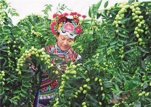 李云燕查看小枣的生长情况。 永仁县委宣传部供图