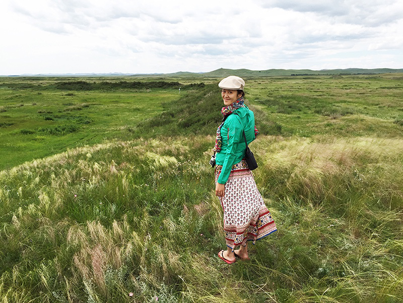本文作者林秀静在草原上