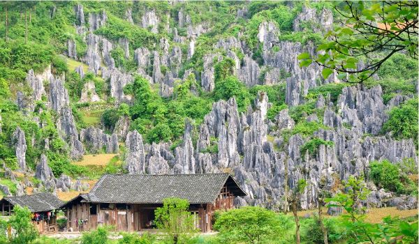 龙门村具有得天独厚的旅游资源,这里的石林是地球上同纬度地区迄今发现的发育最好、生态保持最佳、 保存最完整、出露面积最大的极具科普性和观赏性的连片喀斯特石林。 龙门村石林与树林交相辉映,美不胜收。空间上连片分布, 类型众多,包含了石芽发育从幼年到青年到老年的各种形态,有 针状石林、剑状石林、塔状石林、柱状石林、城堡状石林。林区 形状多变,景色秀丽,能从小中见大、大中见巧、巧中见奇、奇 中见幽。 龙门村石林还形成了许多惟妙惟肖的象形景观,如老虎石、 雄鹰对峙、鬼脸石、四大金刚、三仙迎客等,极具观赏性。石林景区的荆竹园是清白莲教白号军古战场,贵州省重点文物保护单位。