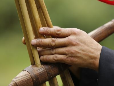 图片名称:贵州贵阳苗族花鼓舞传承人邓开伦教授他人吹奏芦笙